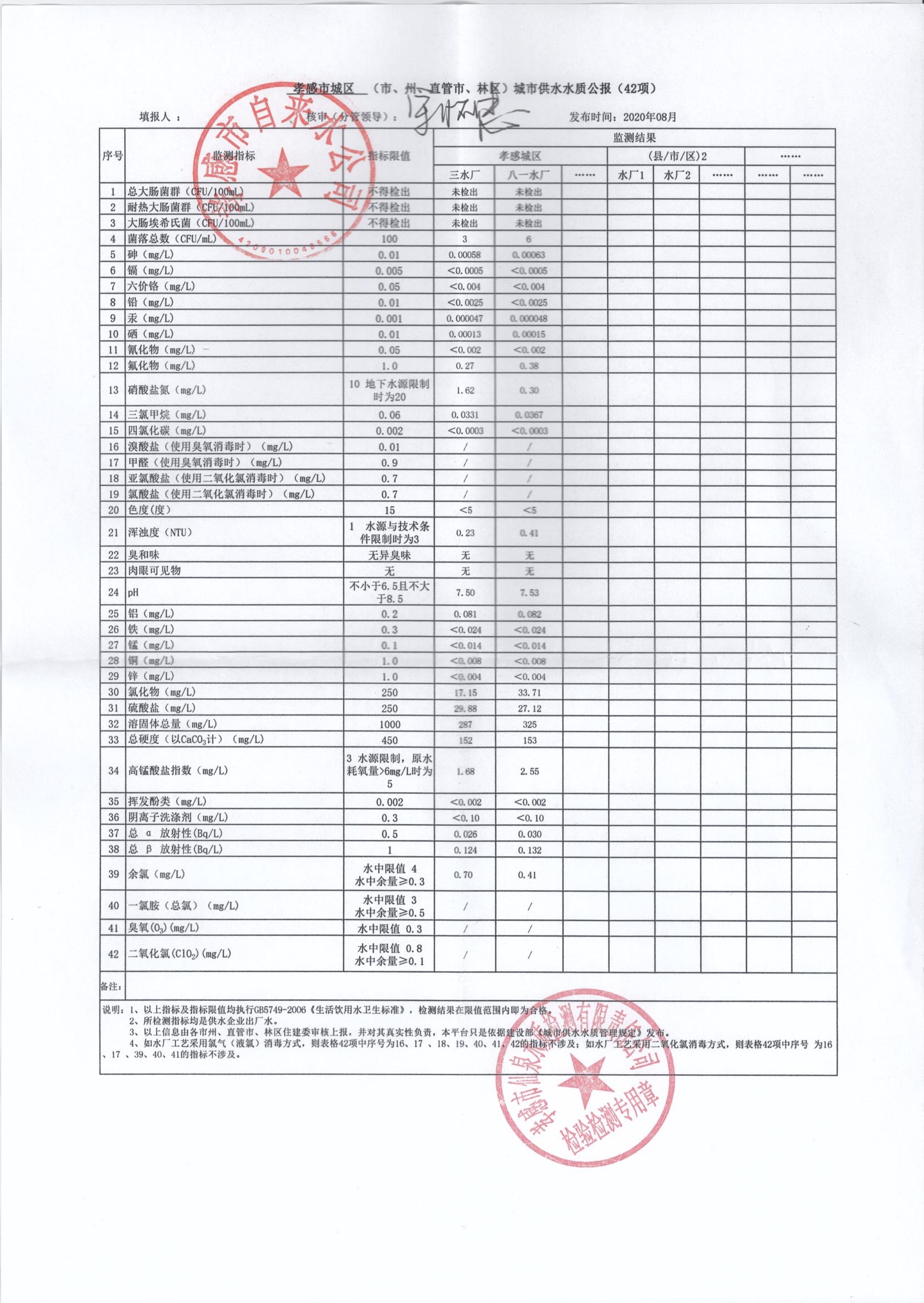 2020年8月水質(zhì)報(bào)告