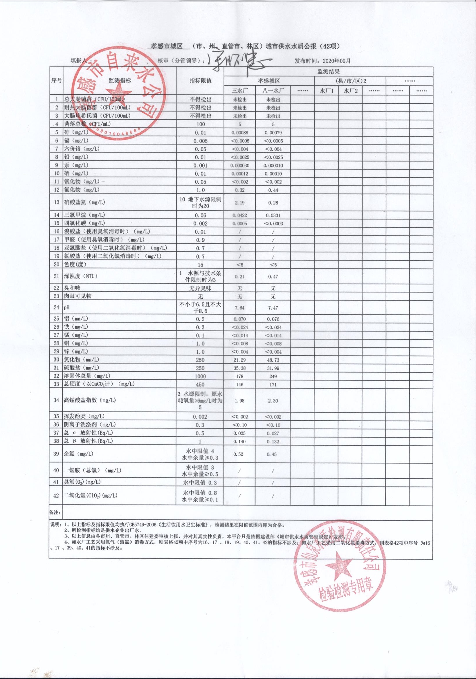 2020年9月水質(zhì)報(bào)告