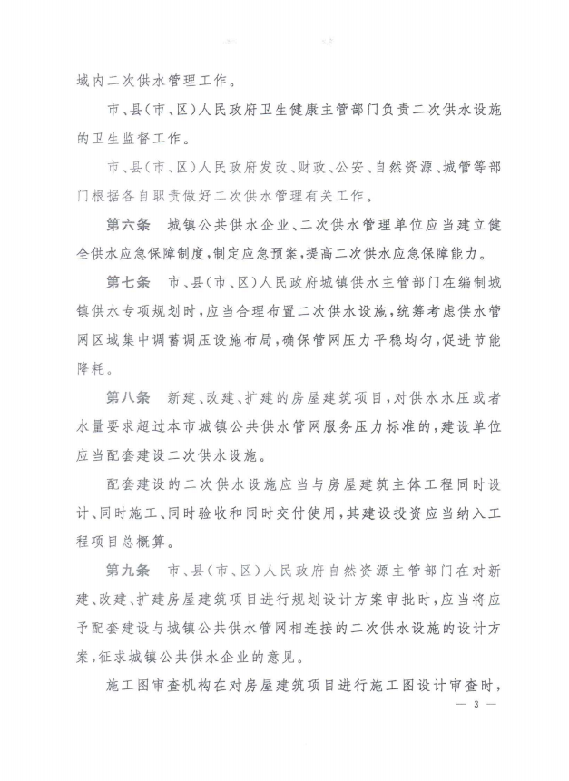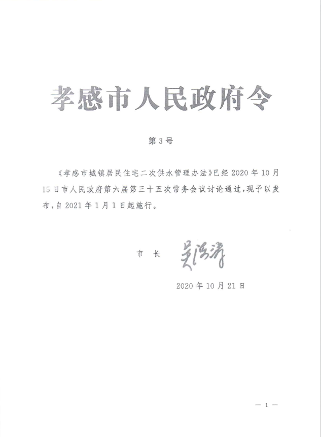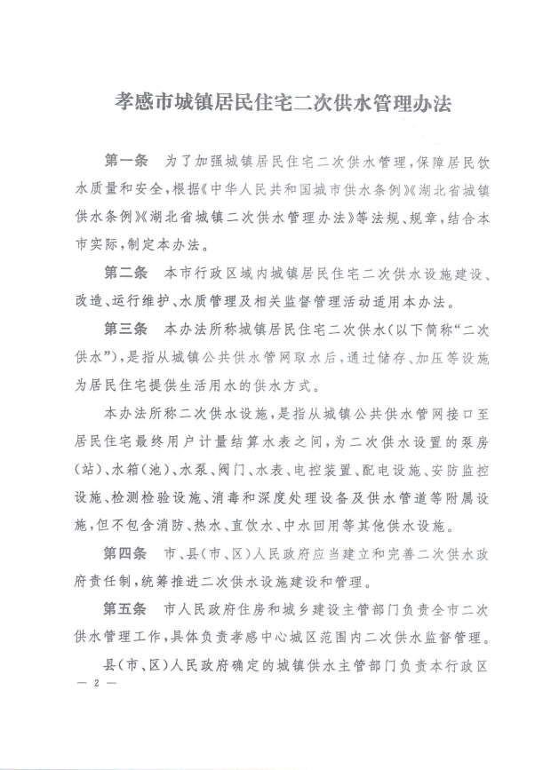孝感市城鎮居民住宅二次供水管理辦法