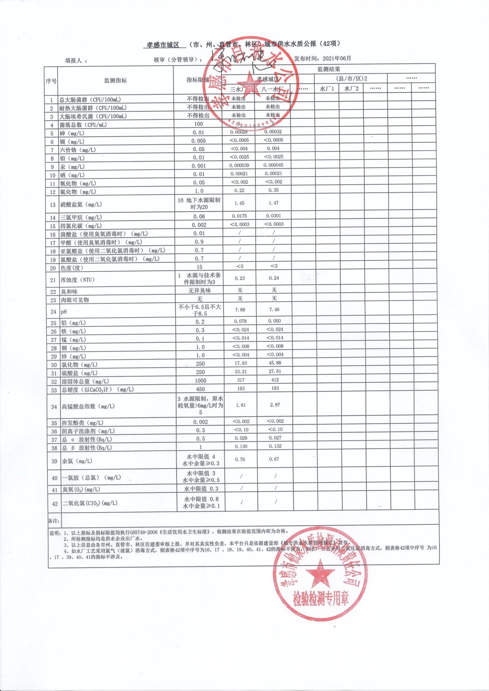 2021年6月水質報告